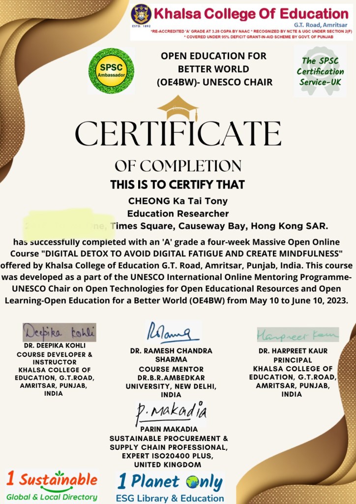 Together with my EdD, I also taken a Digital Detox course ! It is interesting as my declined my expertise on technology innovation but still aware the dark side of technology driven lifestyle to both teachers, students and parents. Honestly, we’re all known that “mirror had two faces” but somehow, temptation and habits – once built up, it is hard to revert.